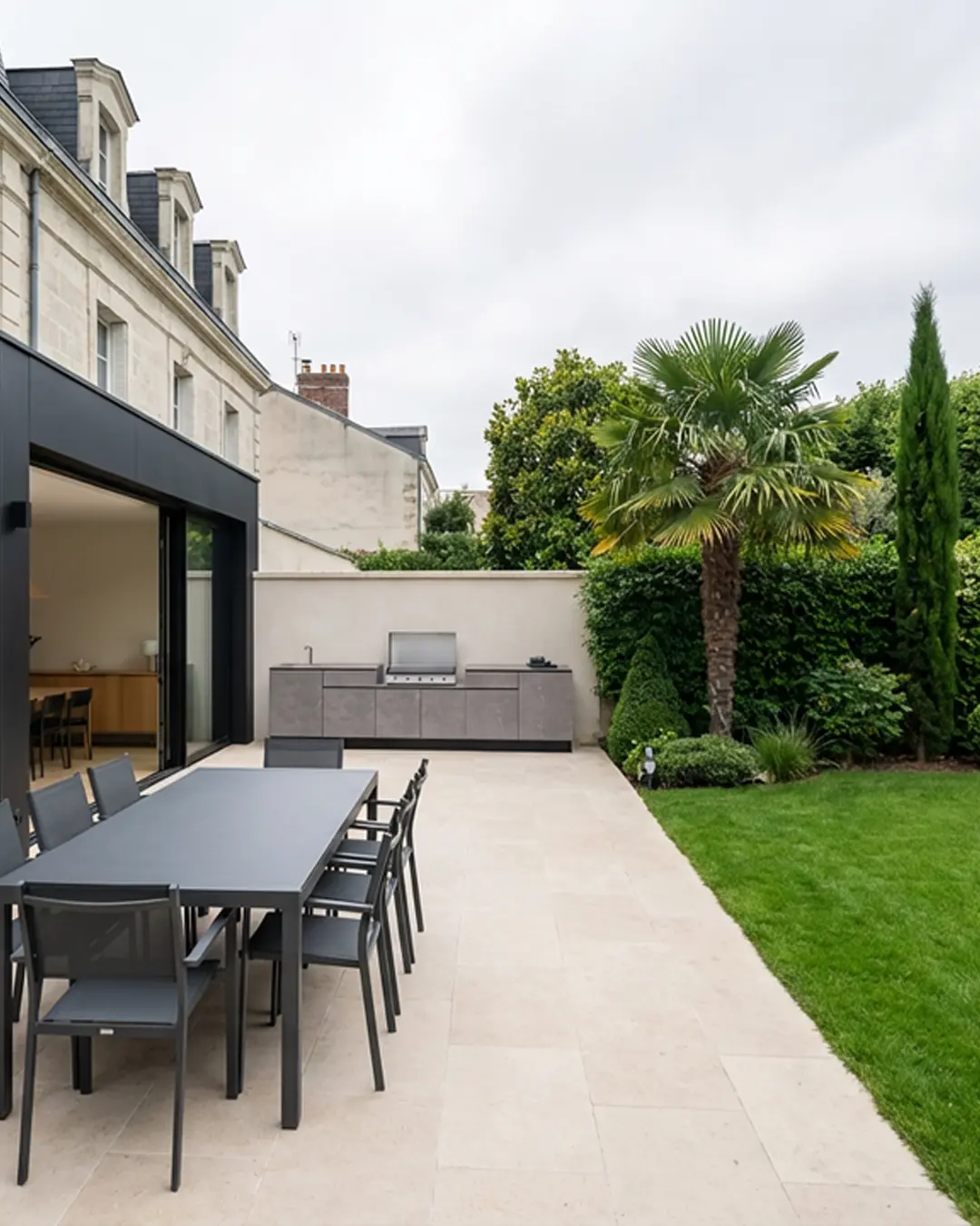 Imaginez une cuisine en céramique ton pierre sous une pergola en bois clair, en écho aux façades en tuffeau. Dans un jardin contemporain aux abords du lac de Maine, un modèle compact aux nuances naturelles structure l’espace sans l’alourdir. Dans une maison rénovée du centre-ville, une implantation linéaire adossée à la façade crée un prolongement élégant entre intérieur et extérieur.