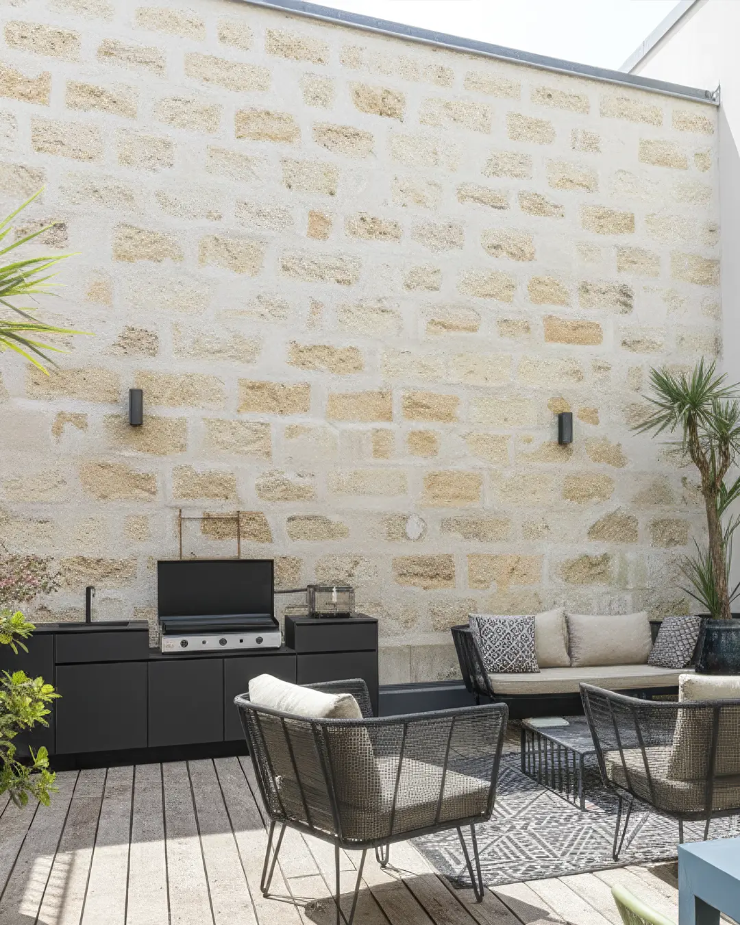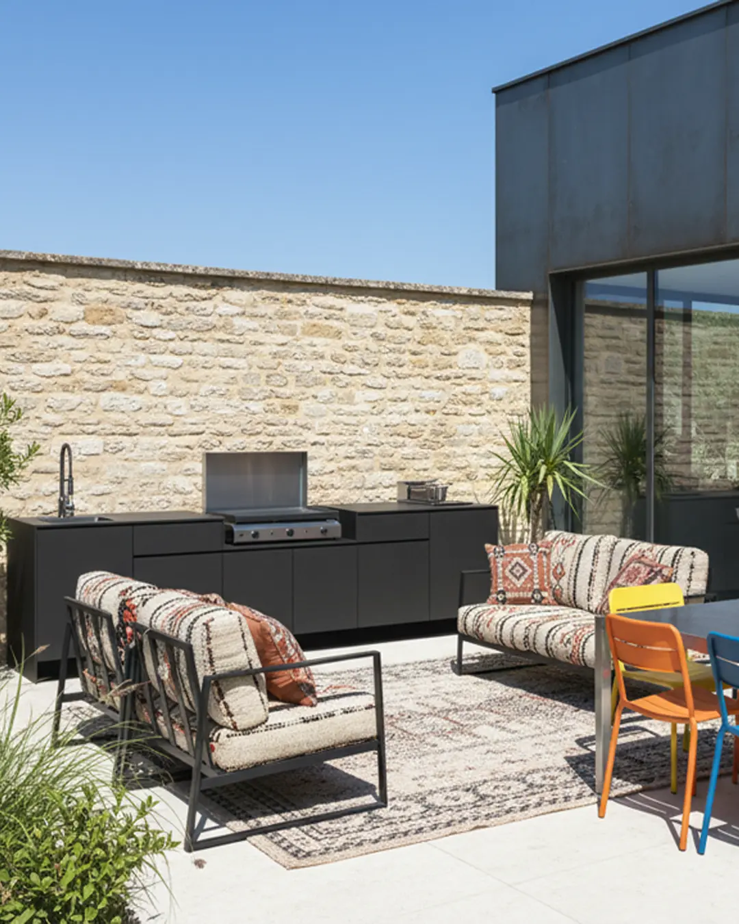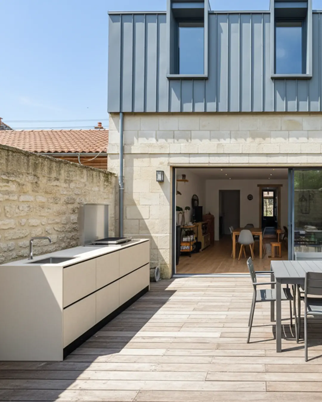 meuble cuisine d'été extérieure avec plancha évier mitigeur terrasse échoppe bordeaux gironde table à manger