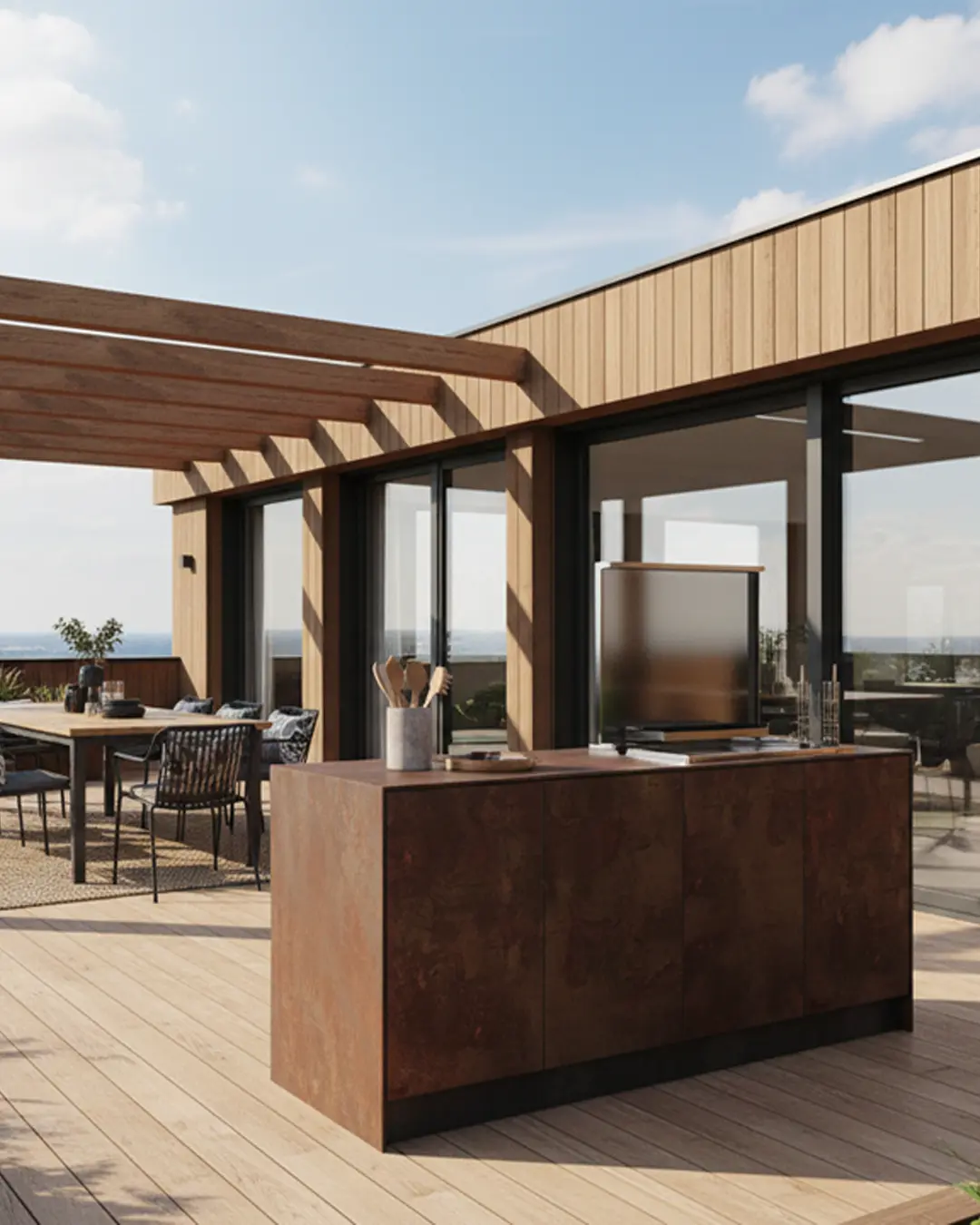 Parce que chaque maison a son caractère, nous concevons des cuisines extérieures entièrement personnalisées : dimensions adaptées, choix des finitions, choix des meubles, choix des équipements et intégration parfaite à votre terrasse ou jardin. Du croquis initial à la réalisation, nos équipes traduisent vos envies en une pièce unique, pensée pour refléter votre style de vie et l’architecture de votre habitat.