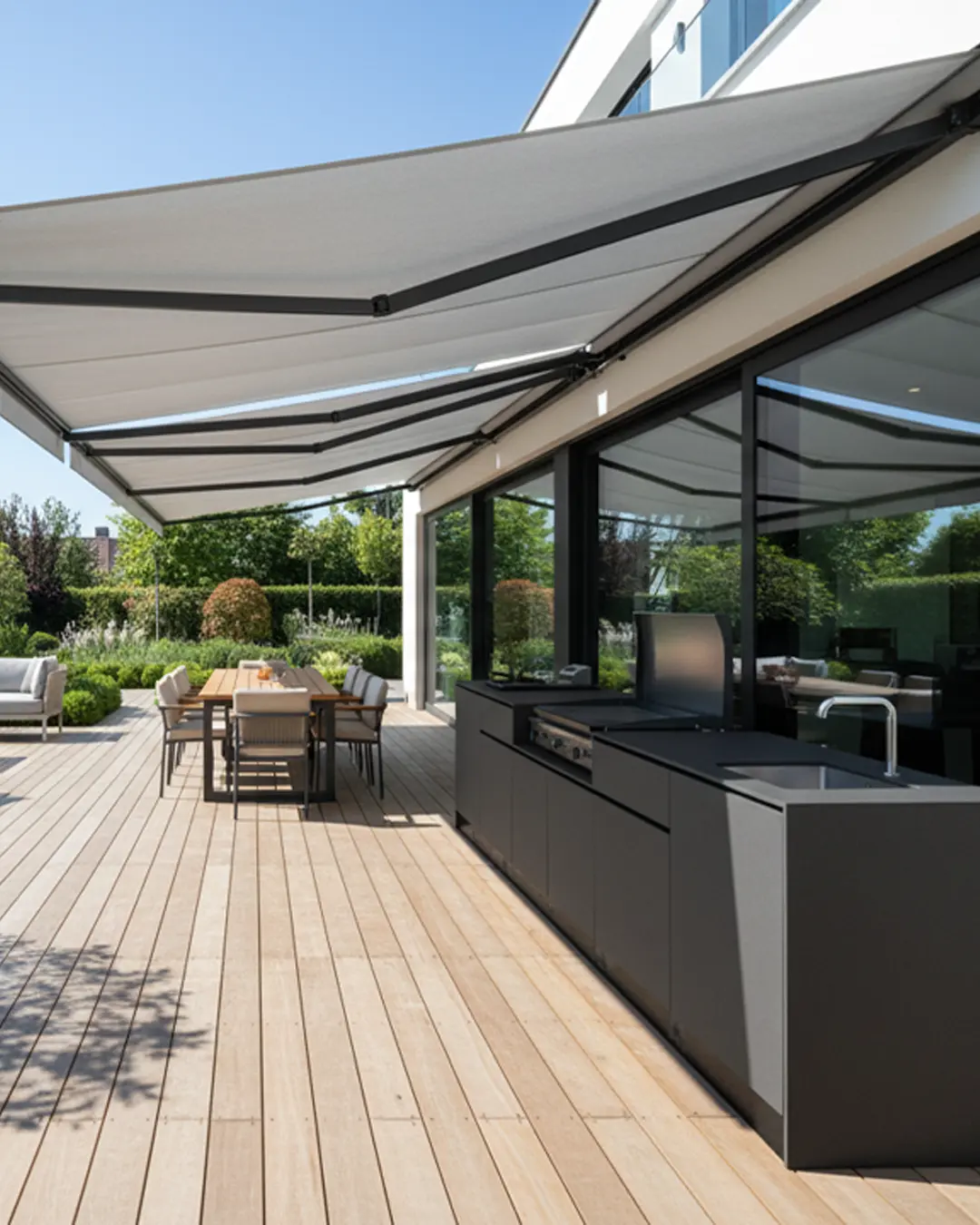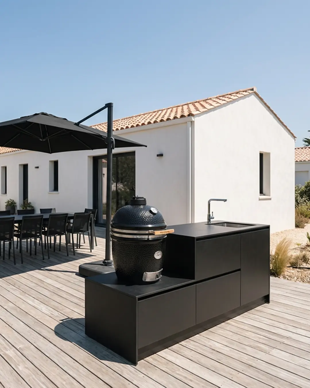Parce que chaque maison a son caractère, nous concevons des cuisines extérieures entièrement personnalisées : dimensions adaptées, choix des finitions, choix des meubles, choix des équipements et intégration parfaite à votre terrasse ou jardin. Du croquis initial à la réalisation, nos équipes traduisent vos envies en une pièce unique, pensée pour refléter votre style de vie et l’architecture de votre habitat.