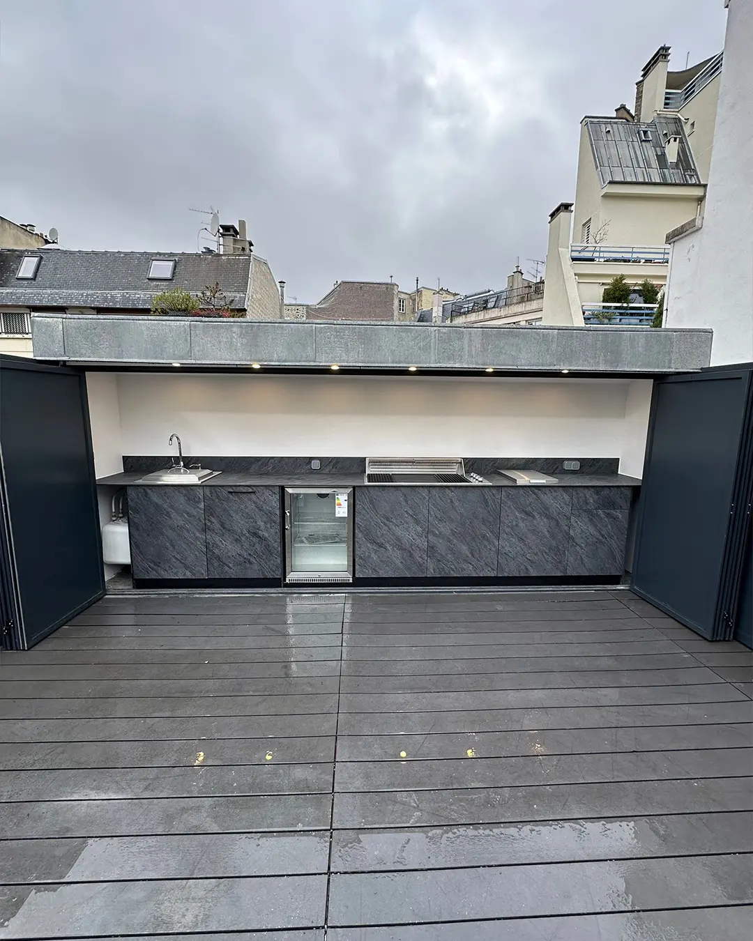 - Sur les terrasses urbaines, où nos cuisines céramique se prêtent parfaitement aux soirées animées.