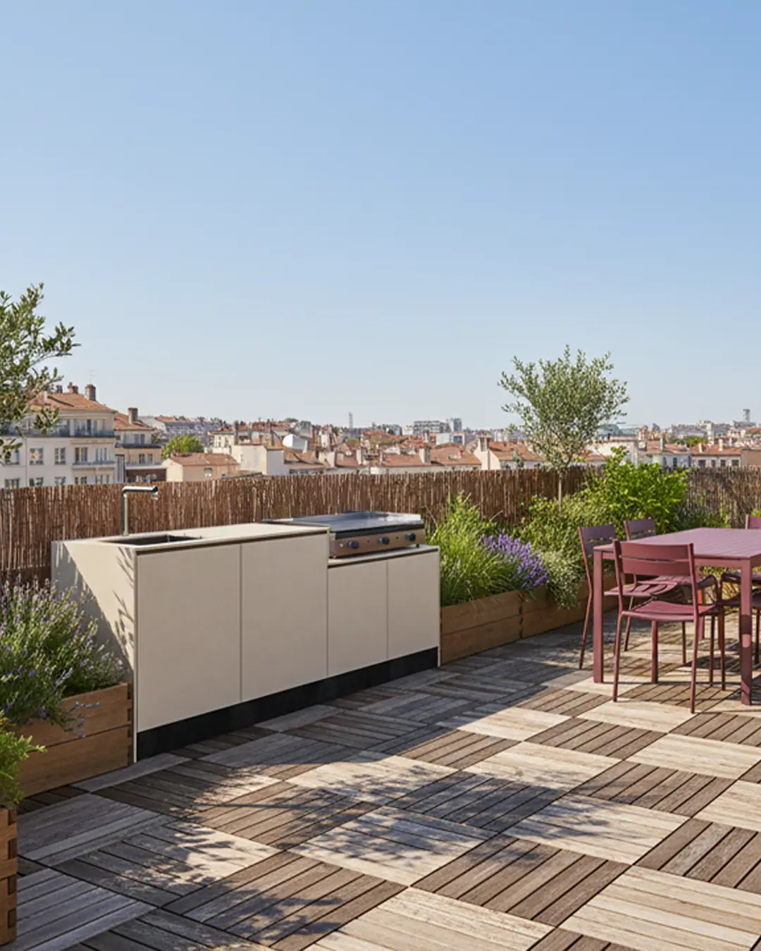 - À Lyon, avec des finitions modernes et texturées sur les toits-terrasses.