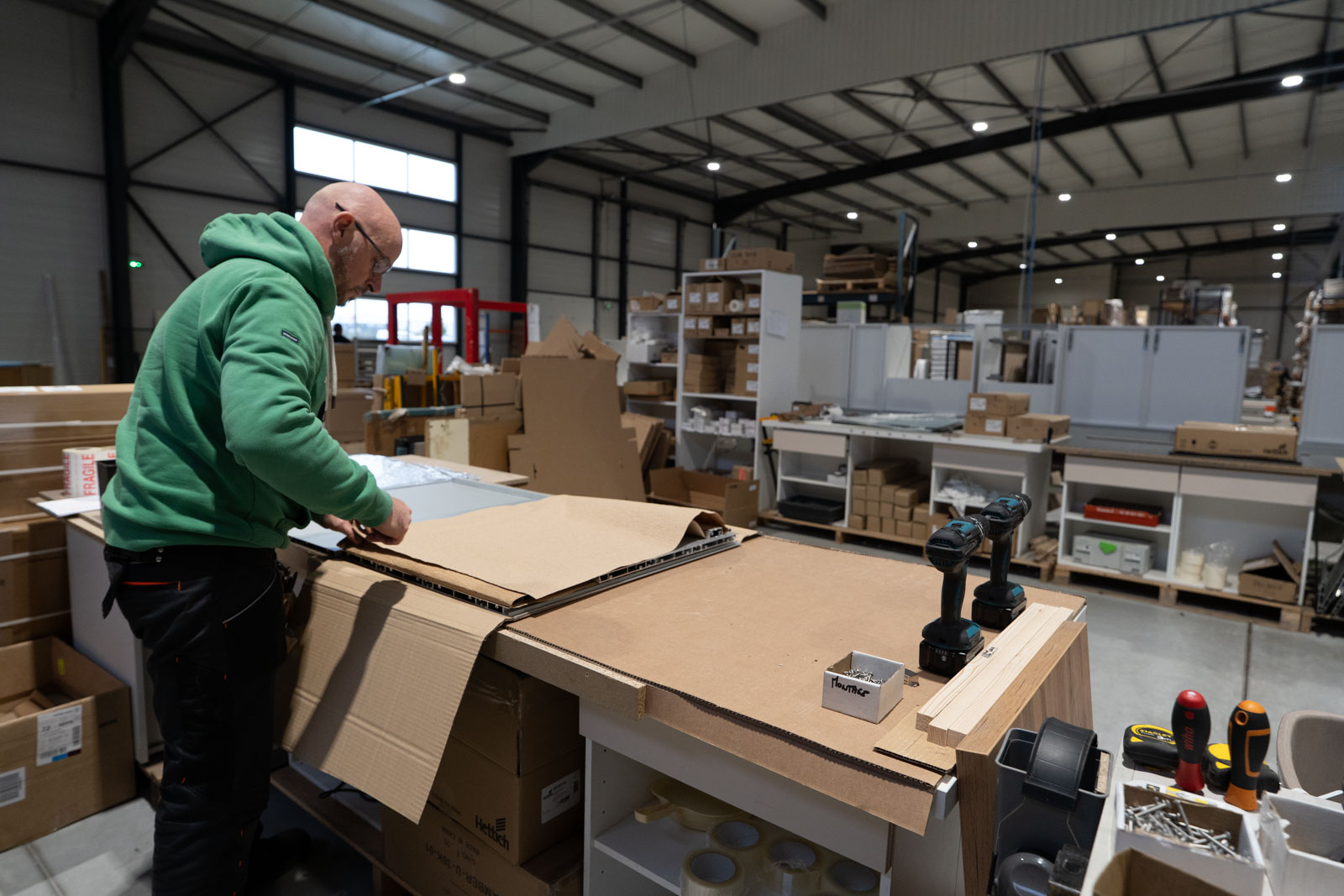 Notre outil de production, près de Bordeaux, a été entièrement repensé. Nous sommes passés d’un espace de travail de 1600m2 à un nouvel atelier de 3300m2 parfaitement réfléchi pour optimiser la fluidité des échanges et les process de fabrication. Nos installations ont été conçues pour offrir un cadre de travail lumineux, ergonomique et parfaitement organisé, où chaque collaborateur peut exprimer pleinement ses savoir-faire.