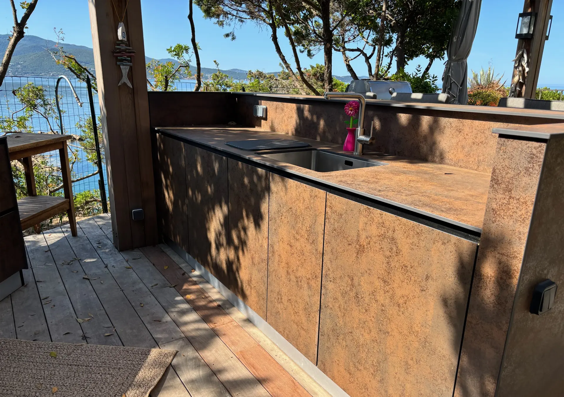 Sous pergola ou structure existante, le bar bénéficie d’une protection accrue, permettant une utilisation prolongée, y compris hors saison.