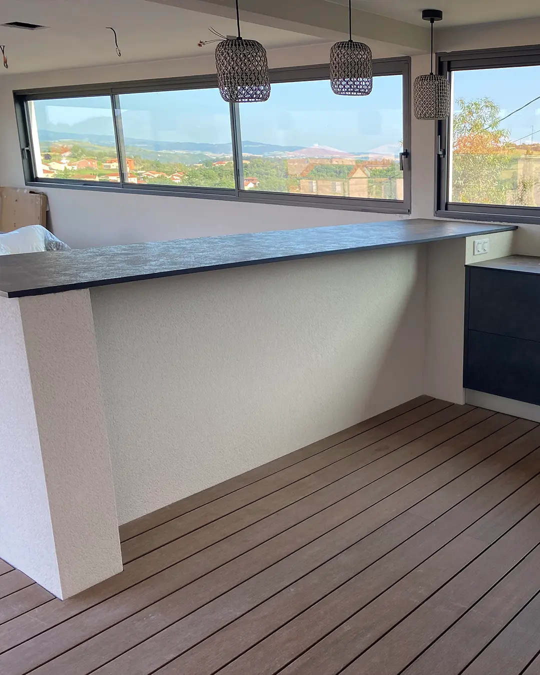 Cette solution permet une intégration fine du bar dans la cuisine, avec des finitions soignées et une longévité remarquable. Elle s’adresse aux projets exigeants, où la durabilité et l’esthétique sont indissociables.