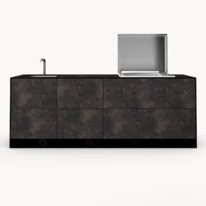 – 1 meuble bas sous cuisson (1 casserolier + 1 faux casserolier) de largeur 1,2m