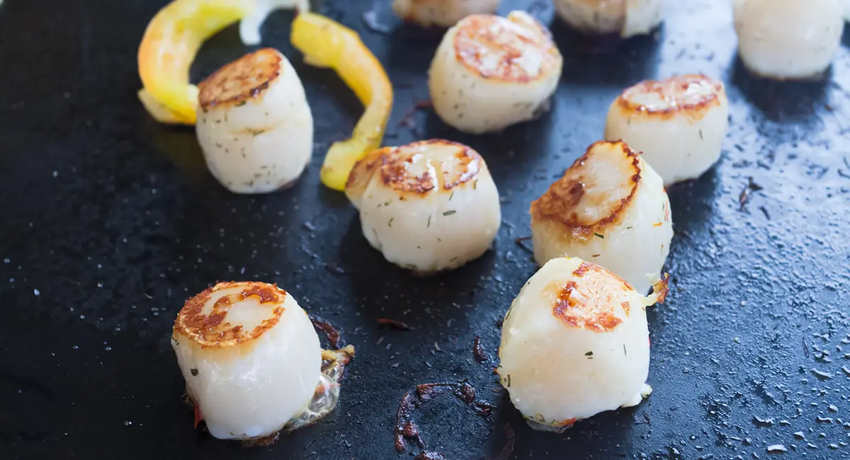 - Saint-Jacques snackées à la plancha, beurre noisette & éclats de noisettes